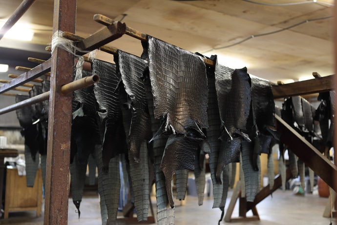 ワニ革を鞣すことができるのは、世界でも20数社、日本では6社のみ。